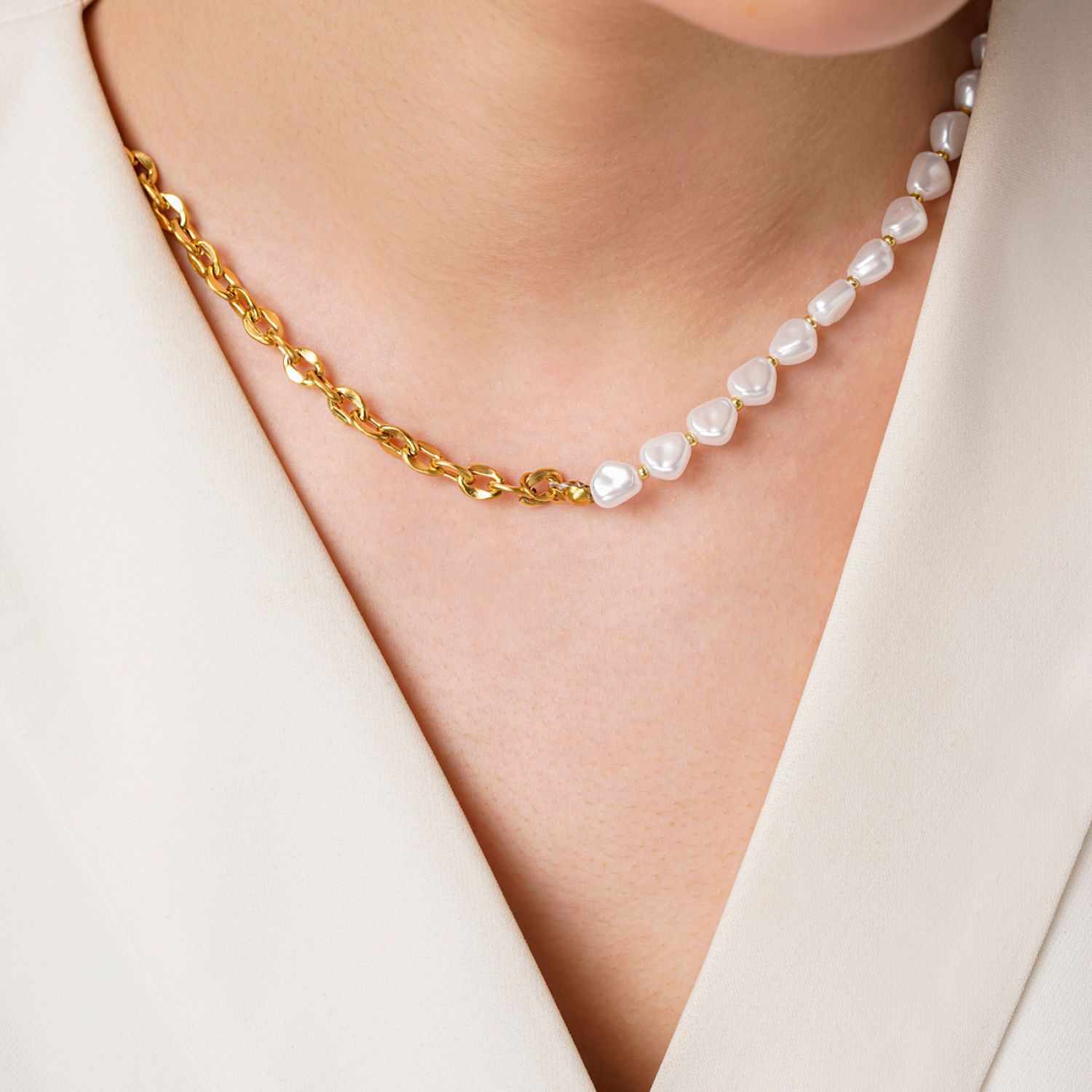 گردنبند استیل 304 مروارید مثلثی 7 میل طلایی